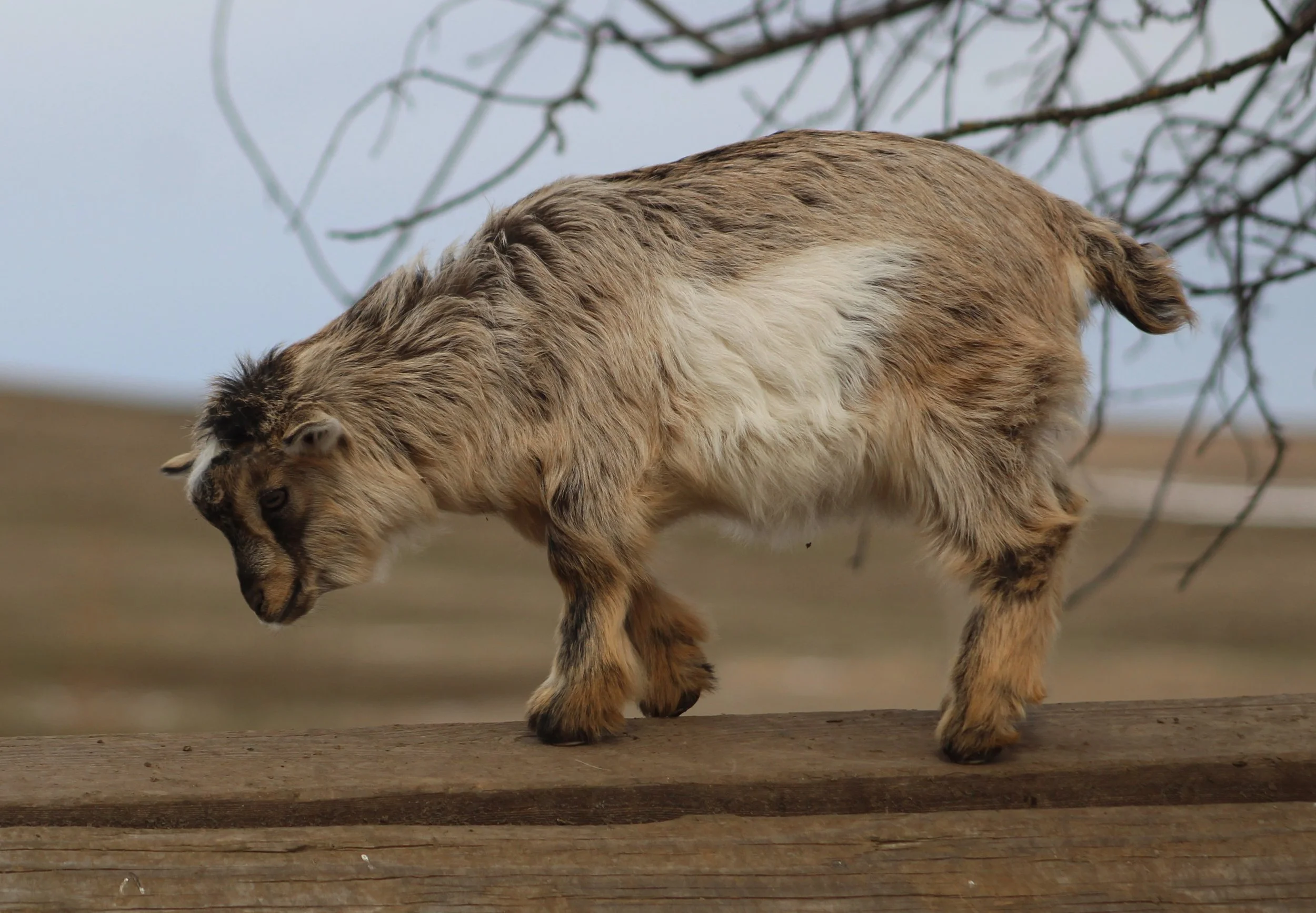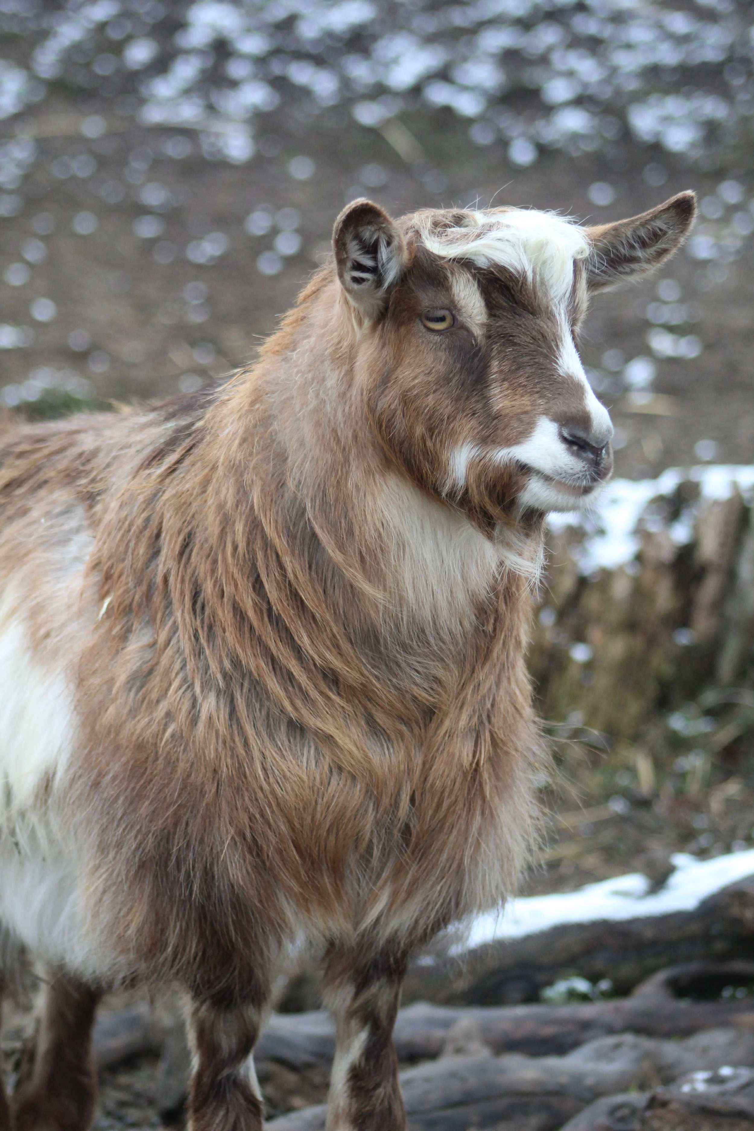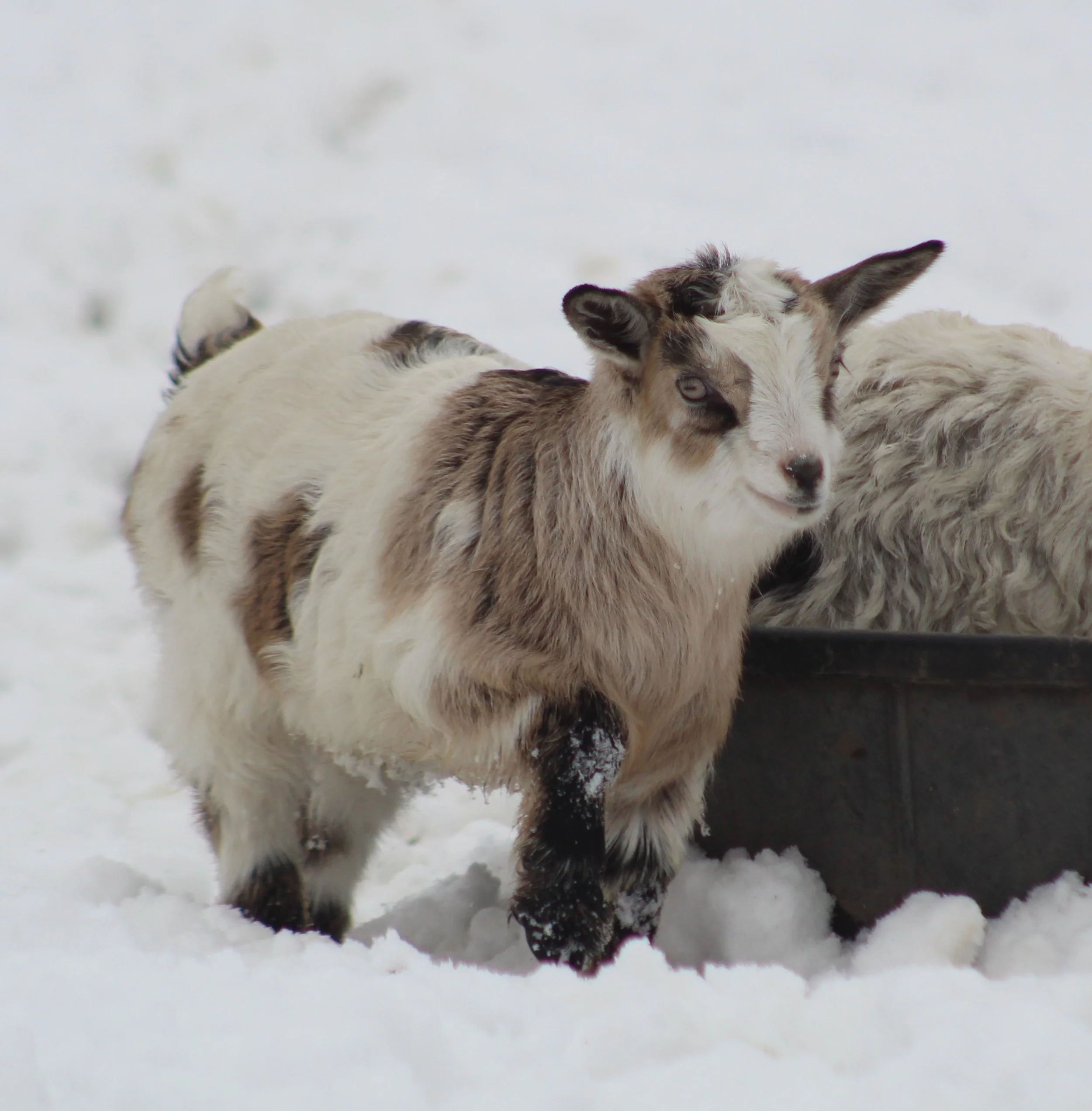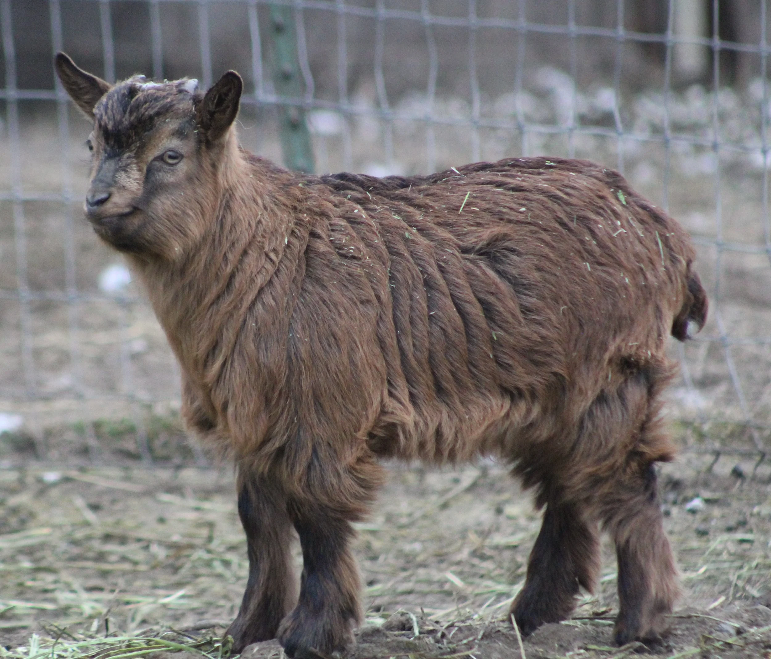 Ari was born Feb. 4, 2025 and is growing out beautifully. She would make a wonderful pet, brood doe, or possibly a show goat if her facial hair comes in more. She may grow out her coat a little slower due to her coloring, but she will be stunning when it comes in!