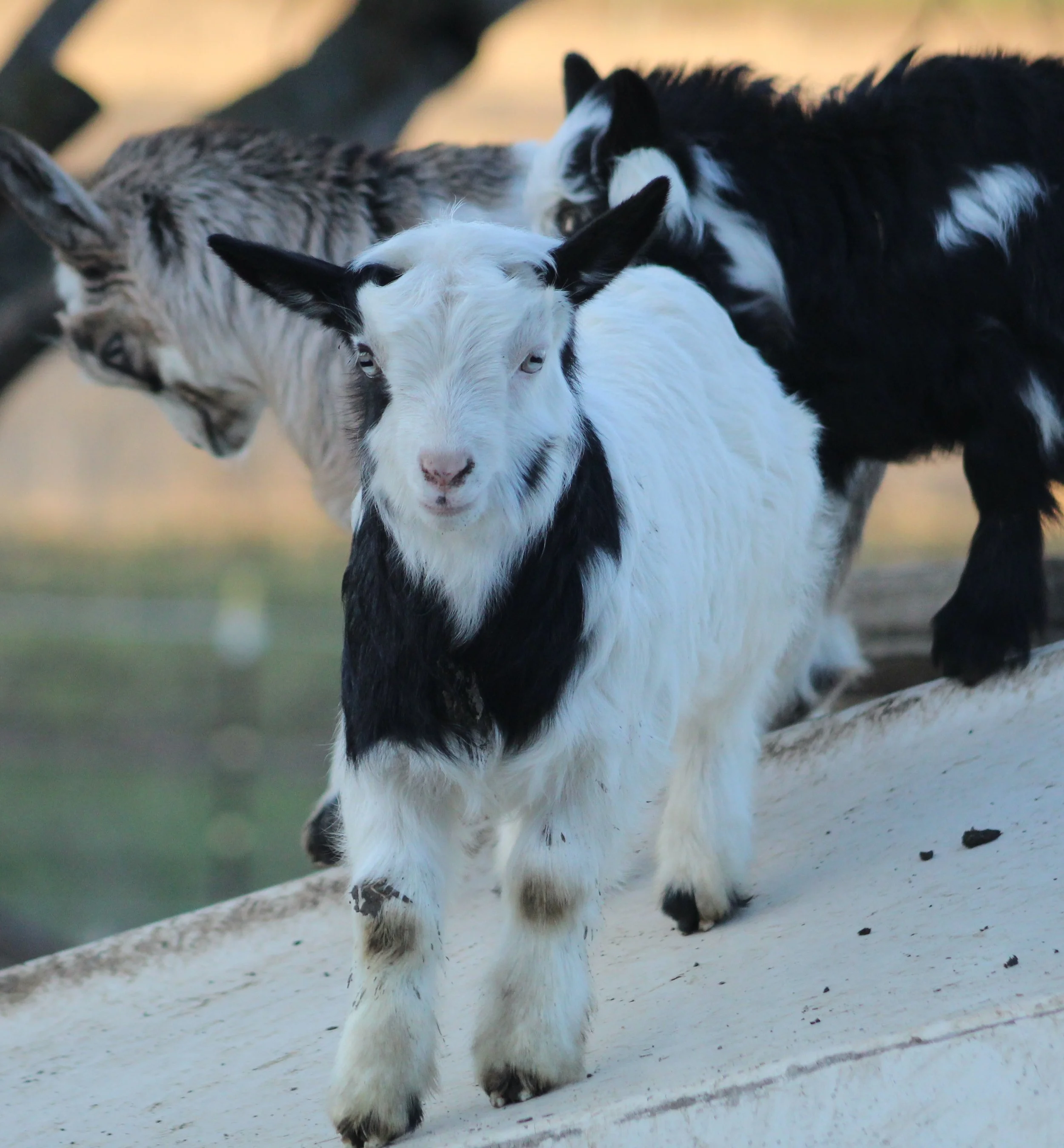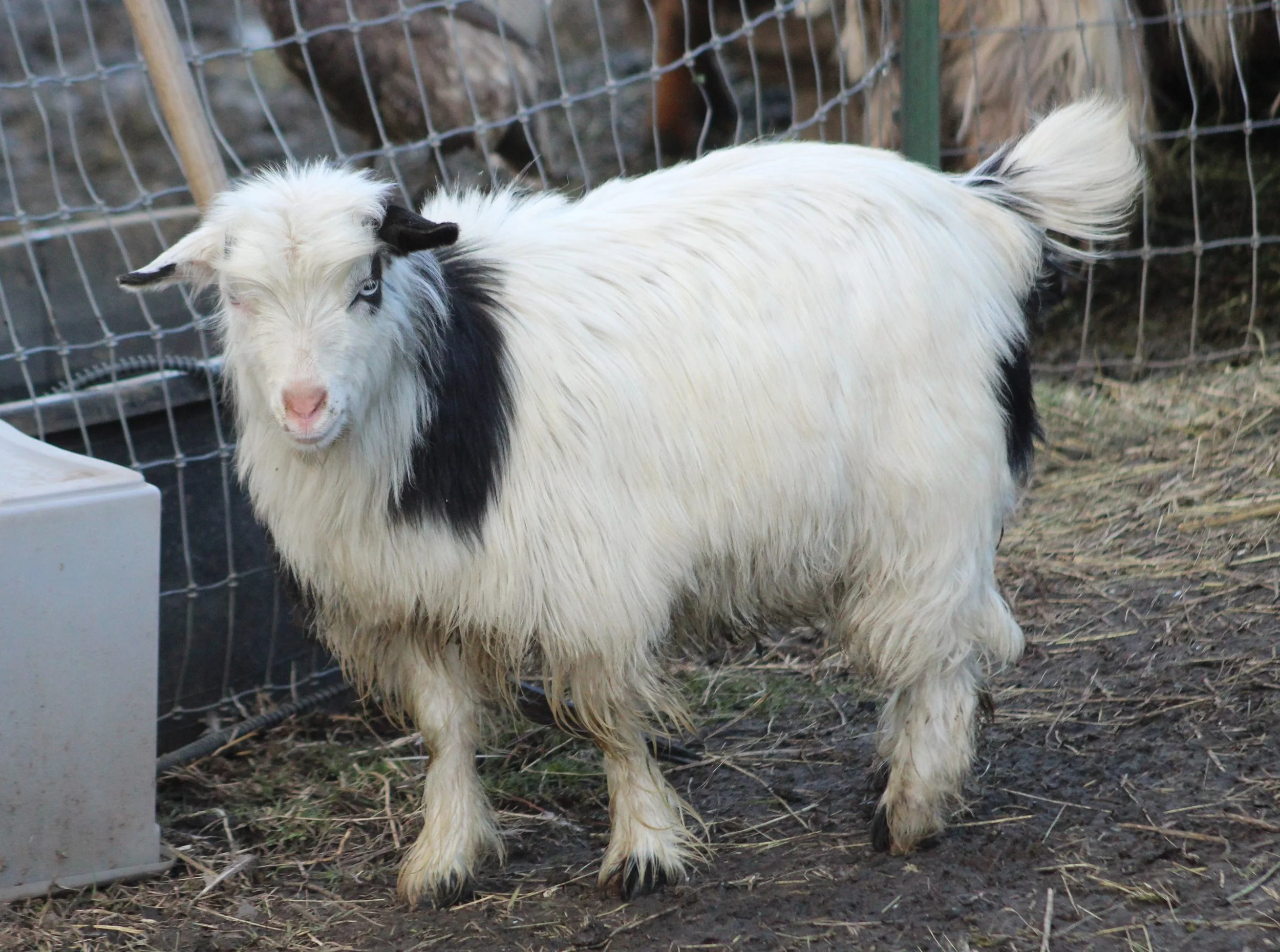 This cutie was born 12/26/2025. She is black & white and has the prettiest blue eyes. She is growing out beautifully, but I’m thinking she may grow too tall for breed standards. I am offering her as a pet. Disbudded and microchipped. Option to register, but it will raise her price.
