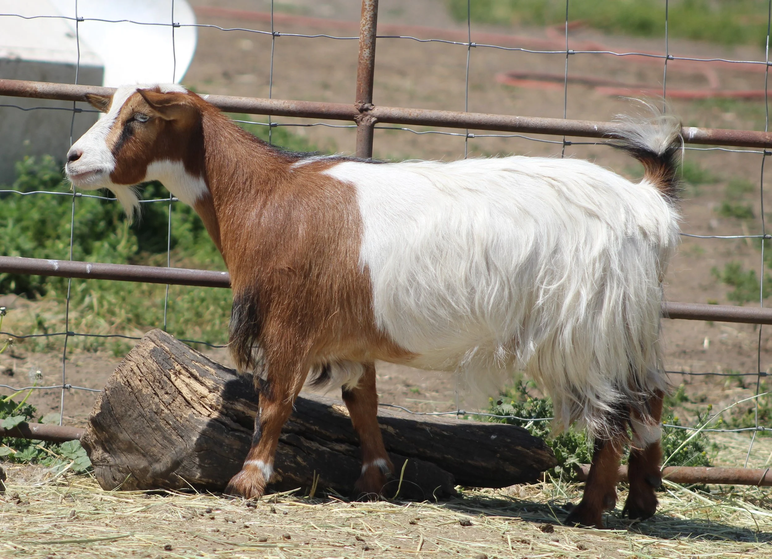 Kope is a short, handsome guy who rubs off his facial hair, but grows it out on his kids. He makes nice, correct babies with that showy, look-at-me attitude. I am keeping a son of his, and some daughters, so he can find a new herd to make pretty babies in. He is a son of MCH Hootnanny Acres Lil River!